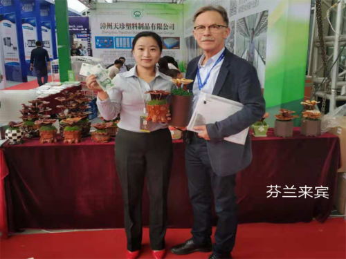 天珍塑料展位人来人往,络绎不绝,本届展出了塑料菌袋、保鲜袋、塑料套环、塑料打孔棒、塑料瓶、塑料筐等等,食用菌生产用的塑料制品一应俱全,吸引了中外嘉宾、代表前来观看,了解询价,有的当场定了货,其中有印度等国外来宾定购了塑料菌袋和塑料套环,会展期间客户定购塑料菌袋、保鲜袋、塑料套环的数量超过历届。
